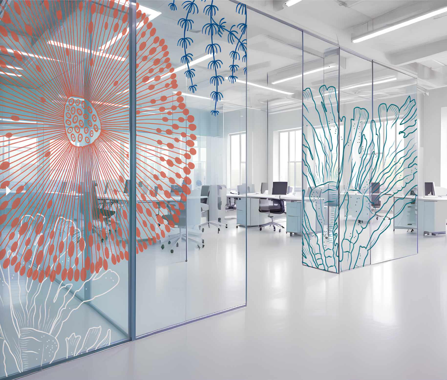 Bien plus qu’un simple élément décoratif, la vitrophanie offre une signature visuelle unique. Elle définit les contours de vos espaces, offrant confidentialité et sécurité tout en embellissant l’environnement.
